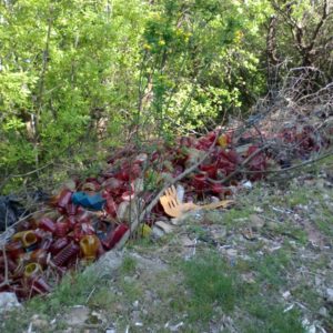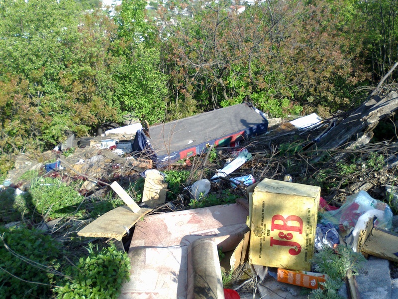 nakon Vaše tužibabe na ovaj problem smo odmah upozorili nadležne službe Grada. Tako Vas možemo obavijestiti da su naši djelatnici ovih dana izašli na teren, te se priprema nalog Komunalnom društvu Čistoća za sanaciju područja koje je onečišćeno. Prema informacijama koje smo dobili, u najskorijem roku očistit će se sav otpad koji je dostupan specijalnom vozilu za njegovo skupljanje. Međutim, moramo istaknuti da se radi o vrlo nepristupačnom i obraslom terenu, pa će do dijela otpada biti moguće doći tek ujesen kada će i cijeli prostor biti očišćen.