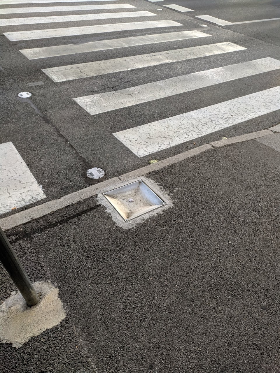 Čak je i poklopac od struje kraj pješačkog tako loše napravljen da je od hodanja udubljen koliko je tanak. Ja sam neki dan skoro pala preko njega.
