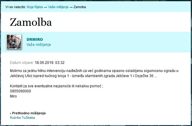 interesira nas zašto je obrisana “Tužibaba” od “sinoć” (fotografija u prilogu …) i da li će netko doći sanirati tu ogradu prije nego netko strada ?
