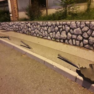 zamolili bi Vas da se u što je mogućem kraćem roku riješi problem ovih sad vrlo opasnih stupića (na samom ulazu u Jelićevu Ulicu …). kao i problem opasne ograde između S.Z. Jelićeve 1 i Osječke 36 (za koju je prije duže od dva mjeseca obavljen uviđaj i ustanovljeno je da je opasna i prioritet a škola samo što nije počela …) …