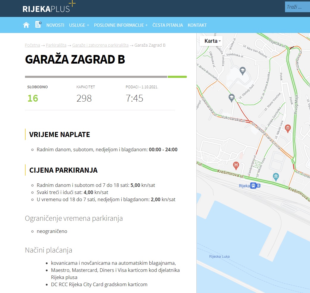 Garaža Zagrad B je u doba od 8-16 h, gotovo svakodnevno (radnim danom) puna, nemoguće je naći mjesto. Riječ je o garaži u samom središtu Rijeke a ima nerealno nisku cijenu od 5kn/h.