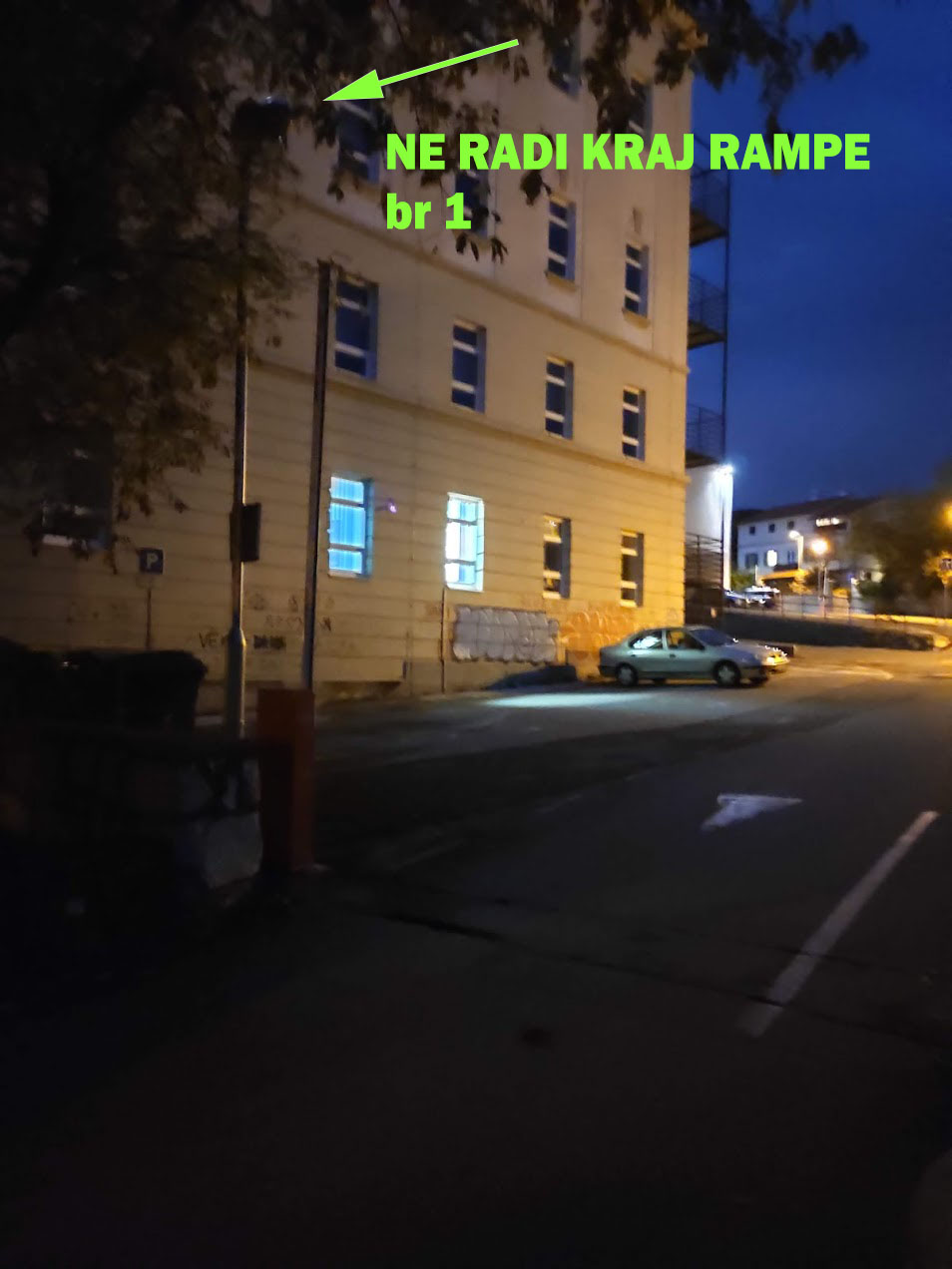 Učenici Prirodoslovne i grafičke škole, Cestovnog prometa, Informatke na Velučilištu, Tehničkog fakulteta, preko 500 djece, građani koji zbog nedostatka mjesta ovdje parkiraju svi ovdje prolaze, mrak sada po zimi pada sve ranije i da Grad ili tko je već nadležan da nema novaca da zamijeni žarulje!?