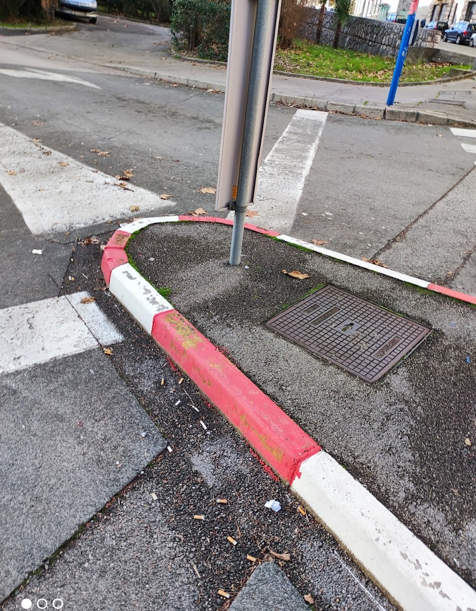 Diljem grada, od Delte, Rive itd. sva naplatna mjesta su tako slabo označena plavom bojom. Kada se i boja, za 6 mj kao i da nije nikada bojano te ta plava boja nestane. Isto su pješački loše označeni, uglavnom katastrofa.