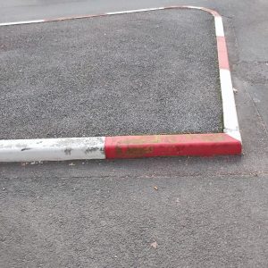 Gotovo polovina boje, samo od kiše je otpala i već se vide tragovi-žuto bijele boje odispod.