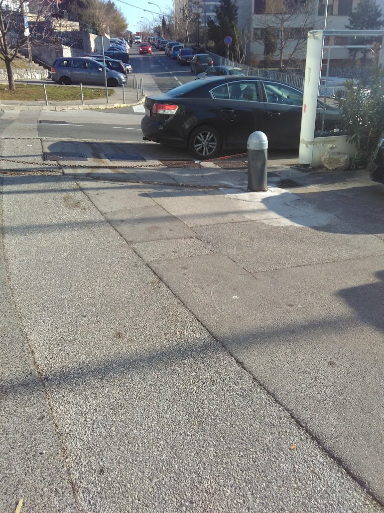 Uvidom u zemljišne knjige prostor je u vlasništvu grada a ovdje je non-stop preko 20 parkirališnih mjesta zauzeto od strane ADRIA P. A. d. o. o. OIB: 58757250711 a ako nije, namjeste se tako da nitko osim njih ne može parkirati.