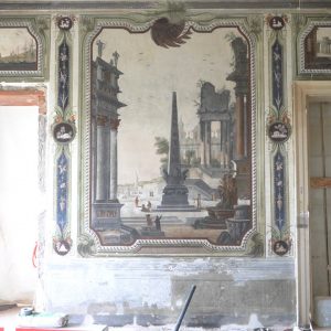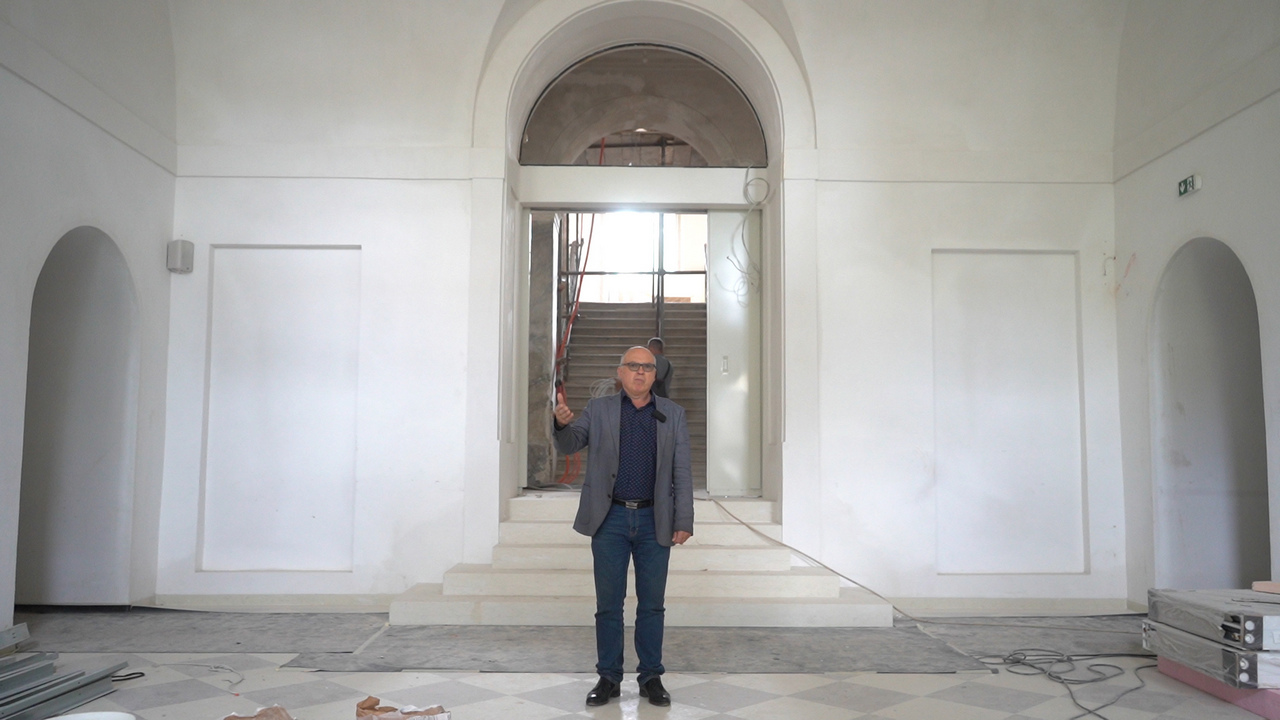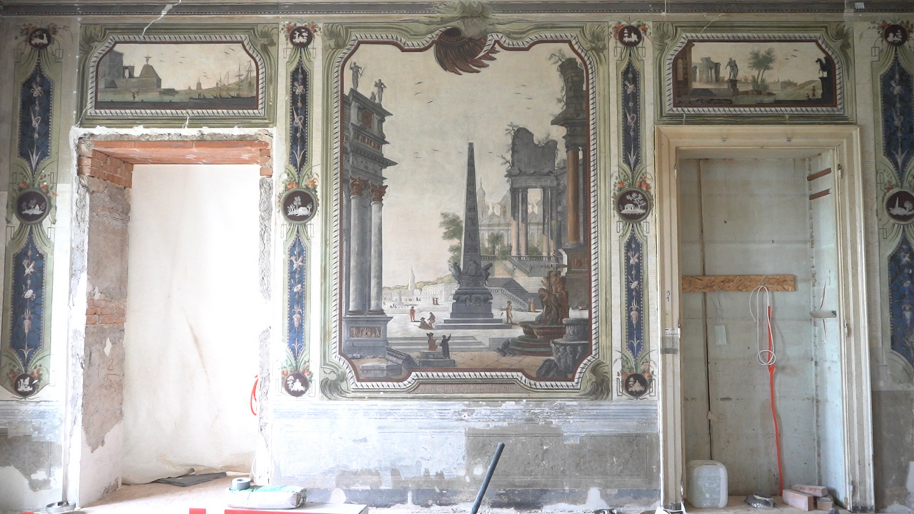Naime, paralelno s građevinskim radovima na rekonstrukciji ove barokne palače u kompleksu “Benčić”, Hrvatski restauratorski zavod izvodi i restauratorske radove u njezino bogato dekoriranom interijeru – na zidnim oslicima te štuko ukrasima mitoloških sadržaja, panorama imaginarnih gradova i povijesnih scena iz vremena antike.