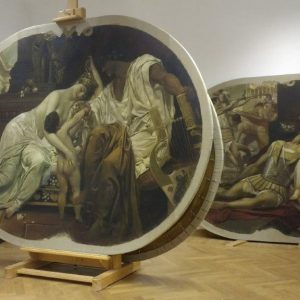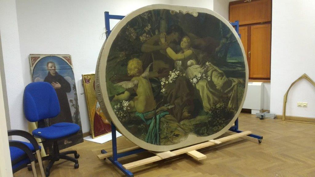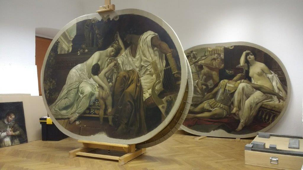 U sklopu priprema za izložbu, na svim su slikama obavljeni konzervatorsko-restauratorski radovi. To im nije prvi put, ista vrsta zahvata na njima je bila učinjena 1978. kao dio tadašnje obnove riječke kazališne zgrade. Slikama je tada vratio željeni izgled Regionalni zavod za zaštitu spomenika kulture u Splitu.