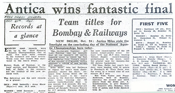 1967. popis ženskih plivačkih rekorda indijske države Maharashtre pružao je