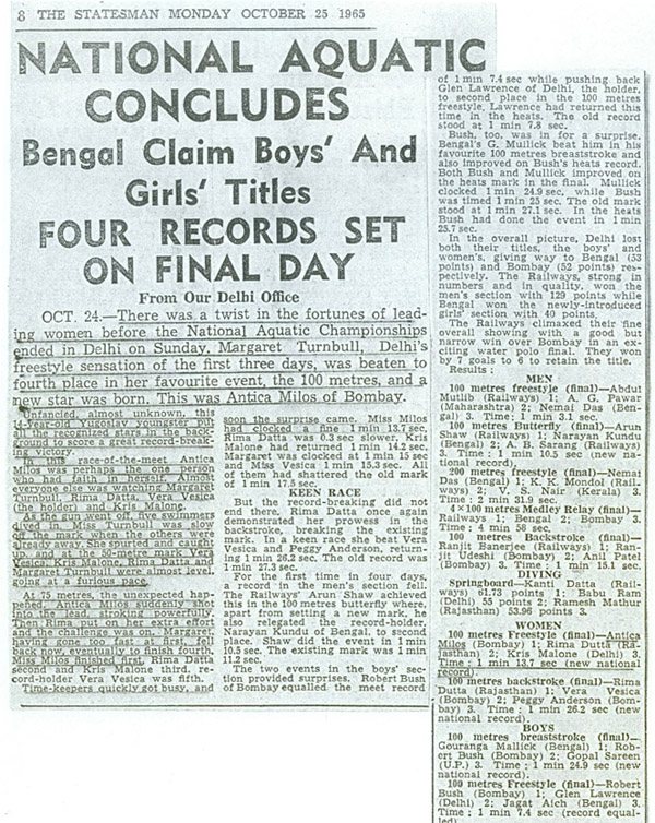 plivačkoj zvijezdi Rimi Dutta. Gdje god se Rima uspinjala na pobjednički tron,