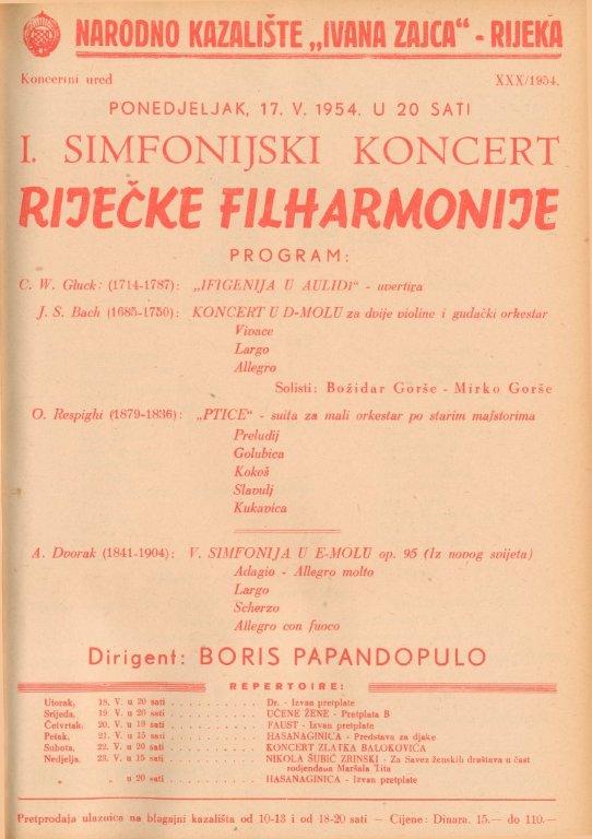 kupovanju ulaznica za pojedine simfonijske koncerte. Program za sezonu 1954-55.