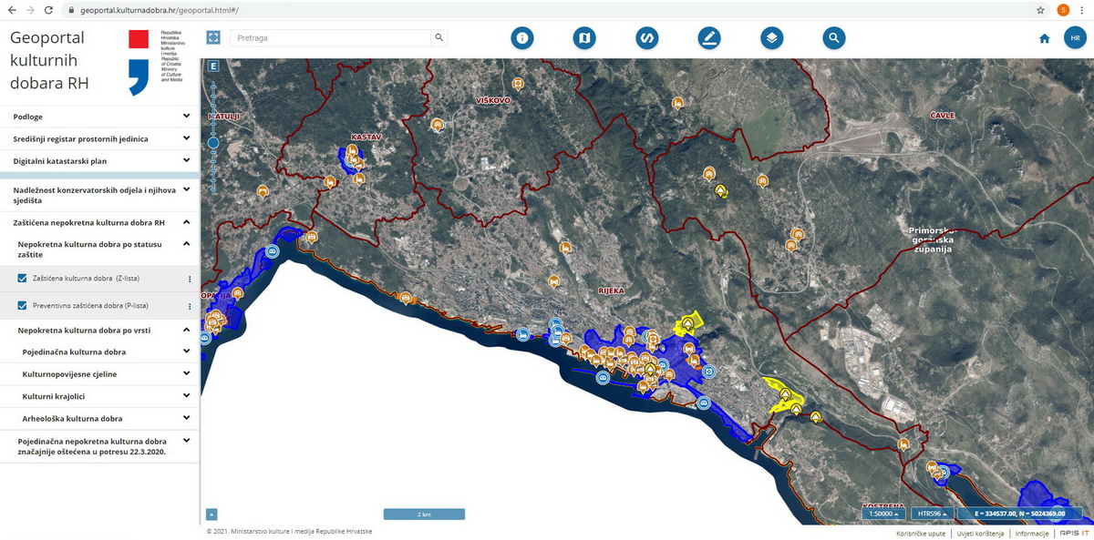 Ministarstvo kulture i medija objavilo je Geoportal kulturnih dobara Republike Hrvatske, u koji su uključena i kulturna dobra na području grada Rijeke.