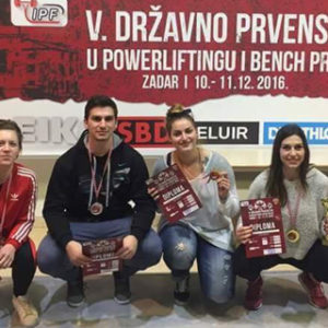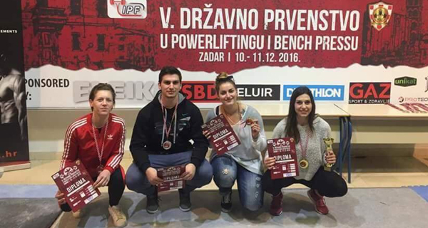 62,5 kg, mrtvo 122,5 kg), Iris Bradanović u juniorskoj kategoriji -72kg 1. mjesto