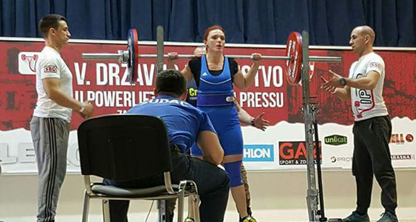 je 1. mjesto (čučanj 102,5  kg, potisak
