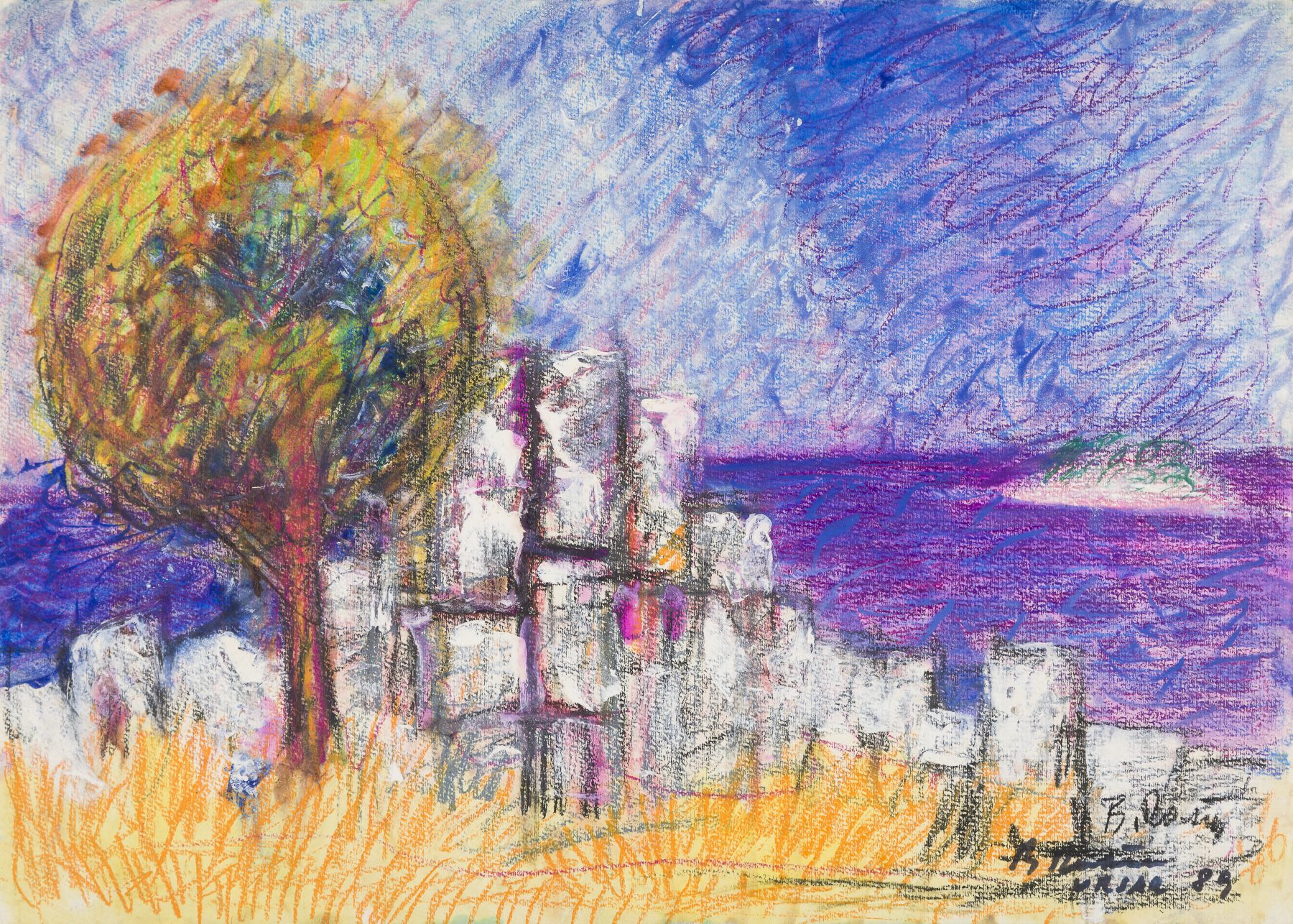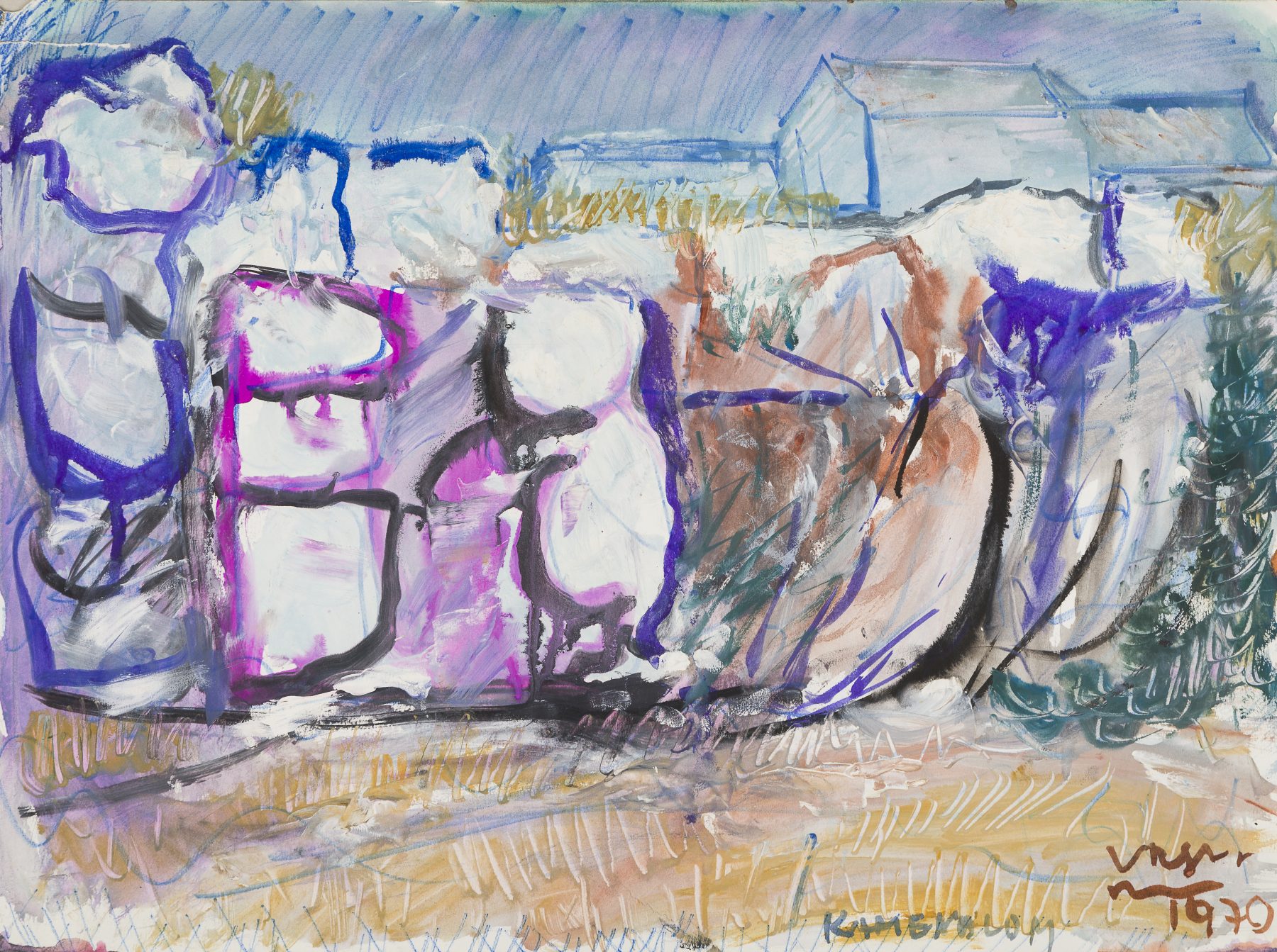 Naime, krajem šezdesetih godina prošlog stoljeća Rašica obnavlja staru istarsku staju u Vrsaru i pretvara je u kuću za odmor. Kad god ima priliku, Rašica crta plohe svijetlosivog kirmenjaka, u vegetaciji jarkih boja i raznih vizura. Crta ga s pogledom iz doma i otvara ga otocima i morskom horizontu. S pučine zatvara kamenolom s krovovima vrsarskih kuća, gleda ga iz lučice s romantičnim prizorom čempresa uz kameno ziđe crkve, hodočasti i upija tu scenu, vraća je životu kroz sjećanja, ili je promatra na licu mjesta dok s terase olovkom, pastelom ili flomasterom fino ili grubo kleše grotu vapnenca na papiru.