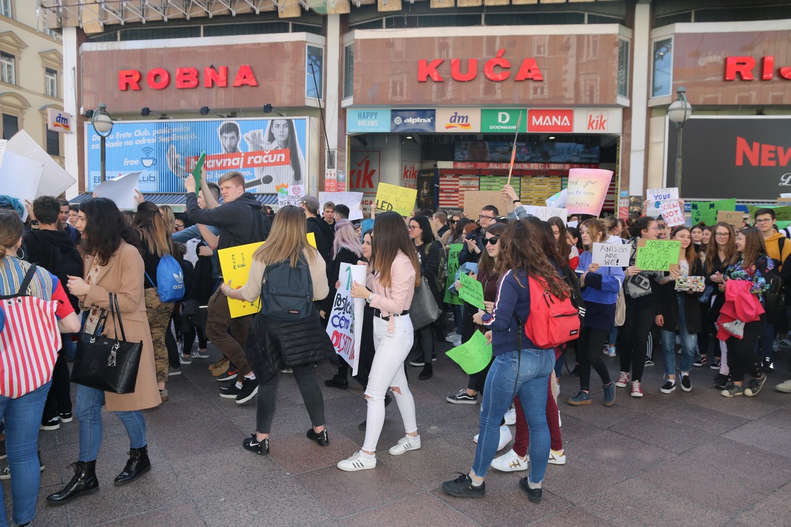 Krenuvši od Jadranskog prema Jelačićevom trgu, povorka učenika je nosila transparente kao znak podrške za ekološki osjetljive životne odabire te kao apel na odgovorniji odnos prema okolišu. Prosvjed su organizirale Maša Liverić, Ana Maria Štefanac i Tin Rubil. Motivaciju im je pružala Gretina priča i odlučnost te hitnost problema globalnog zatopljenja.