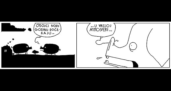 pojavljuje kod drugih hrvatskih karikaturista. Česta tema su i svinje i