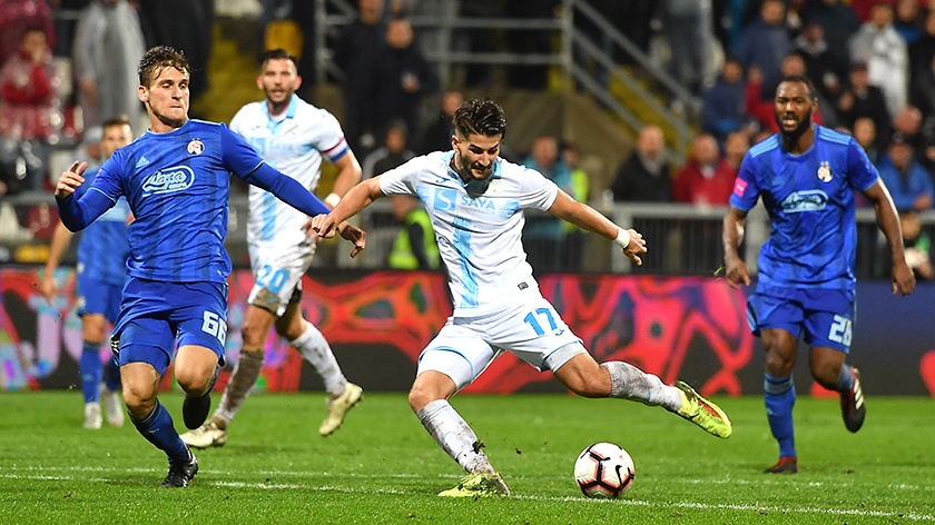 Uslijedio je udarac Zute, a onda je Dinamo uzvratio u 53. minuti. Stojanović se zavukao iza leđa obrane Rijeke, ali Sluga je još jednom odlično reagirao.