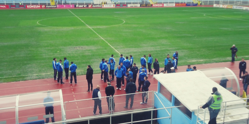 Nešto više od sat vremena uoči predviđenog početka derbija 21. kola Prve HNL između Rijeke i Dinama i službeno je objavljeno da je utakmica odgođena. Kiša je ponovno učinila svoje, teren je potpuno natopljen.