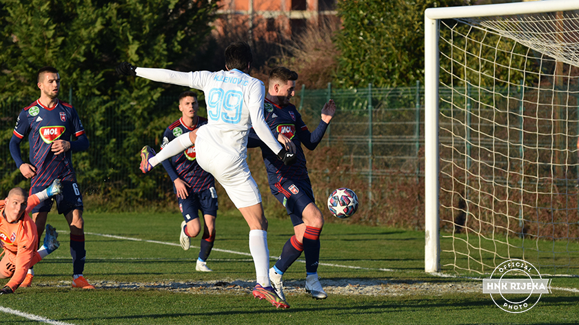 U 23. minuti lijepa akcija Rijeke. Štefulj je ubacio, lopta je preletjela vratara Fehervara, Kulenovića je pucao glavom, ali lopta je u leđa pogodila braniča mađarske ekipe i tako je propala velika prilika.