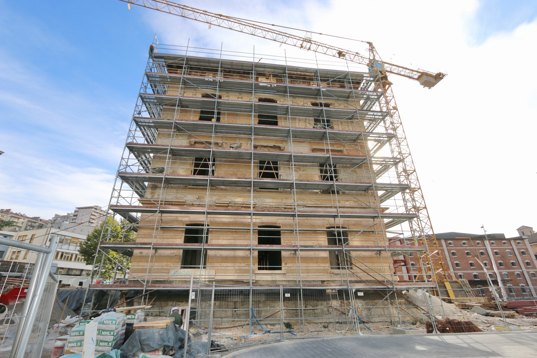 Srušen je i suteren te postojeće temeljne ploče, a kako bi se sačuvali vanjski zidovi objekta, izgrađena je tzv. teška skela koja je držala na okupu kompletno ziđe zgrade.