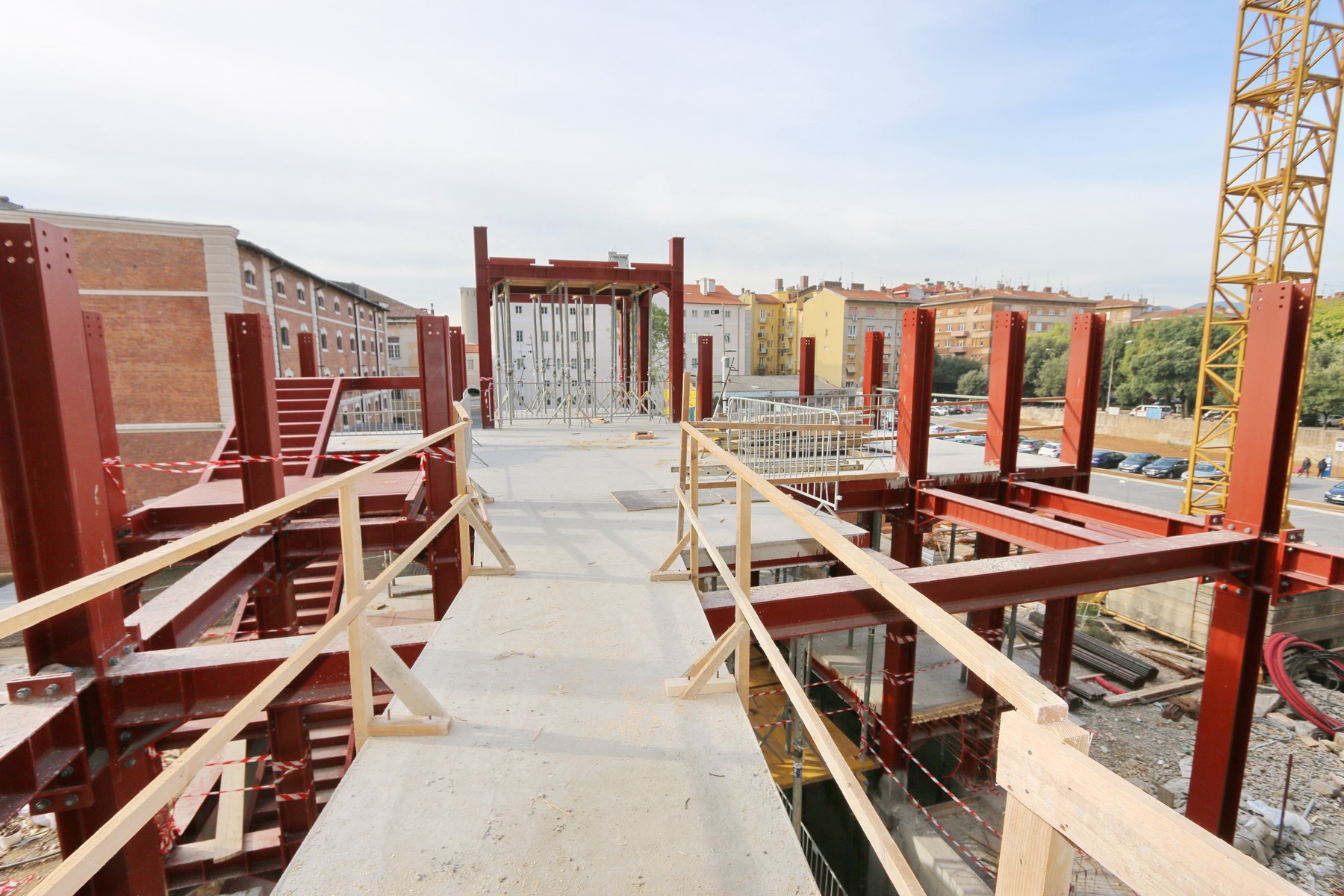 U tijeku su radovi na postavljanju armature i oplate za betoniranje preostalih stupova trećeg kata te su betonirani zidovi suterena i prizemlja nožice (T-nastavka, budućeg glavnog ulaza u zgradu) objekta. Radi se i na montaži čelične konstrukcije T-nastavka završno s drugim katom.
