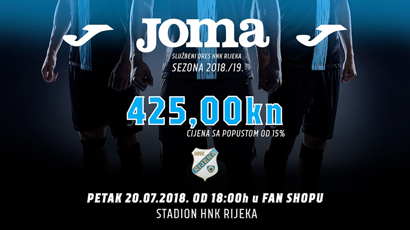 Na ovoj utakmici, momčad Rijeke će premijerno igrati u dresovima robne marke Joma, novog tehničkog sponzora kluba.