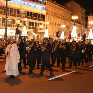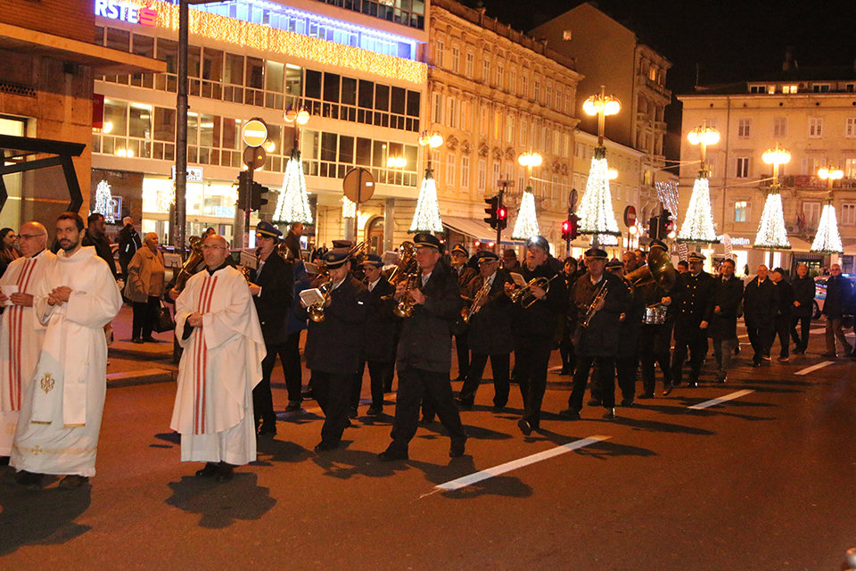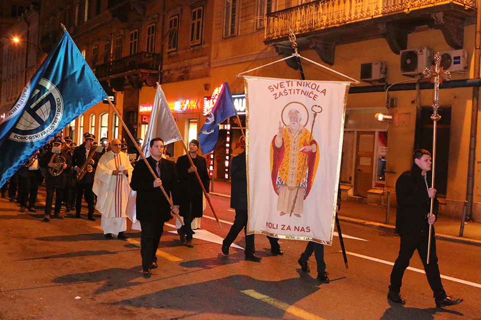 Procesija je krenula ispred zgrade Luke, nastavila Rivom, Zadarskom te Trpimirovom ulicom, a okupila je riječke pomorce, predstavnike institucija i druge građane Rijeke, kojima se pridružio i predsjednik Gradskoga vijeća Grada Rijeke Andrej Poropat. Nakon procesije, u Kapucinskoj crkvi Gospe Lurdske održana je prigodna misa.