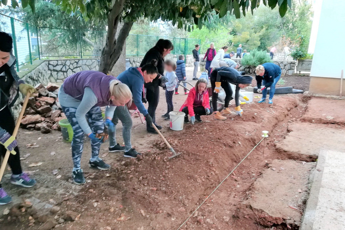Prva subota u travnju označila je početak radova na preuređenju dvorišta, a akciji se, uz odgajatelje, osoblje i stručni tim CPO Turnić, odazvao i velik broj roditelja, njih čak pedesetak. Izvršene su pripreme za mediteranski vrt, uređen je pješčanik, obojane su daske na pripadajućim klupicama, a na ulaznom dijelu dvorišta učvršćene su i postavljene gume koje će djeci služiti za igru ‘Gusjenica – penjalica’. Uz to, izvedeni su radovi iskopavanja središnjeg dijela dvorišta te postavljeni rubnjaci kao priprema za već osmišljenu Taktilnu stazu.