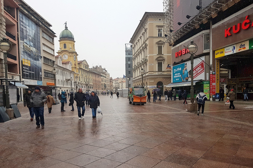 Radi sprječavanja poledice, solju je posipano i Korzo.