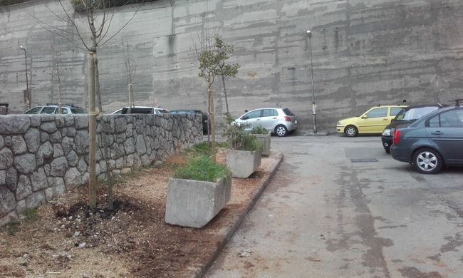 Kod broja 6 privremeno su postavljene zaštitne vaze, kako osjetljive mladice ne bi oštetila vozila neodgovornih vlasnika, koji ih parkiraju naslanjajući se na stabla.
