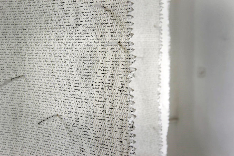 rezanjem u uništivaču za dokumente, ispisivanje teksta Krležinog romana na