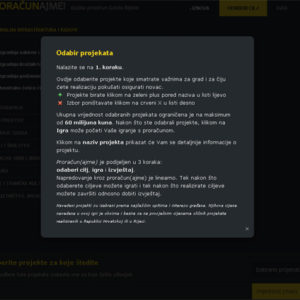 Također, prema najčešćim upitima i interesu građana, naveden je popis projekata koji se u ovogodišnjem proračunu ne nalaze ili se nalaze tek djelomično s manjim iznosima. Igrači odabiru gradske projekte koje žele što prije realizirati. Za realizaciju projekata potrebno je preraspodijeliti novac iz postojećeg proračuna na način da se smanjuju rashodi po pojedinim stavkama, odnosno povećavaju prihode proračuna (prirez i komunalna naknada).