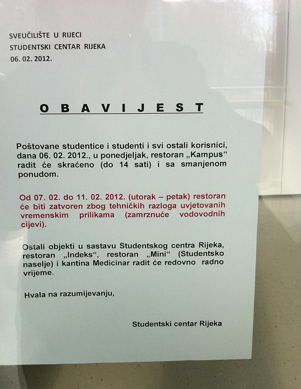 danas popodne nije davalo znakove života). Probleme s cijevima nema samo zgrada