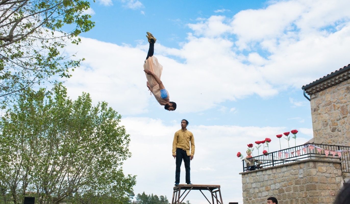 „Pogledaj u nebo“ su šest muškaraca, pet pari hlača i jedna haljina; narodne pjesme, marokansko vjenčanje bez mladenke, ples i mnoštvo zračnih akrobacija na visinama do čak devet metara. Publika uvijek i svugdje ovu predstavu prati radosno i zadivljeno, često zadržavajući dah.