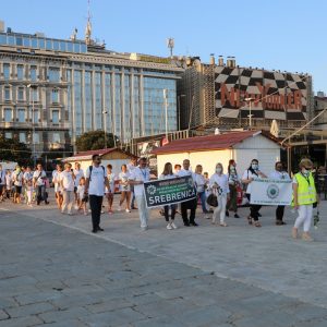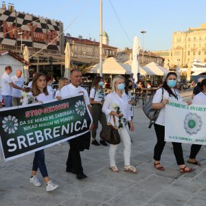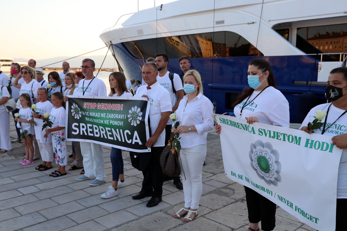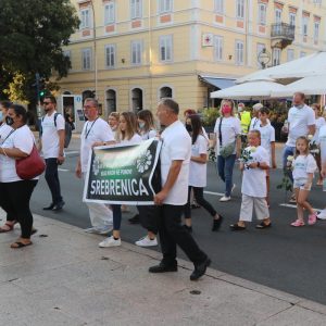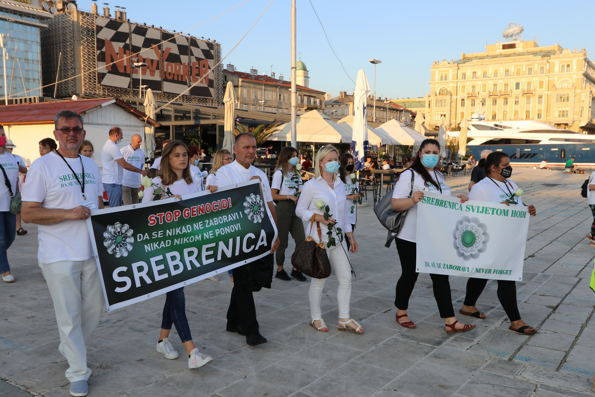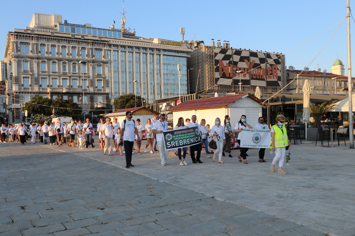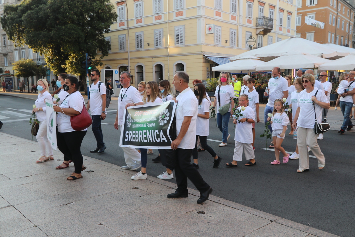 Riječki mimohod započeo je na Mostu hrvatskih branitelja te prošao Korzom, da bi završio na Gatu Karoline Riječke gdje je u more položeno 26 bijelih ruža.