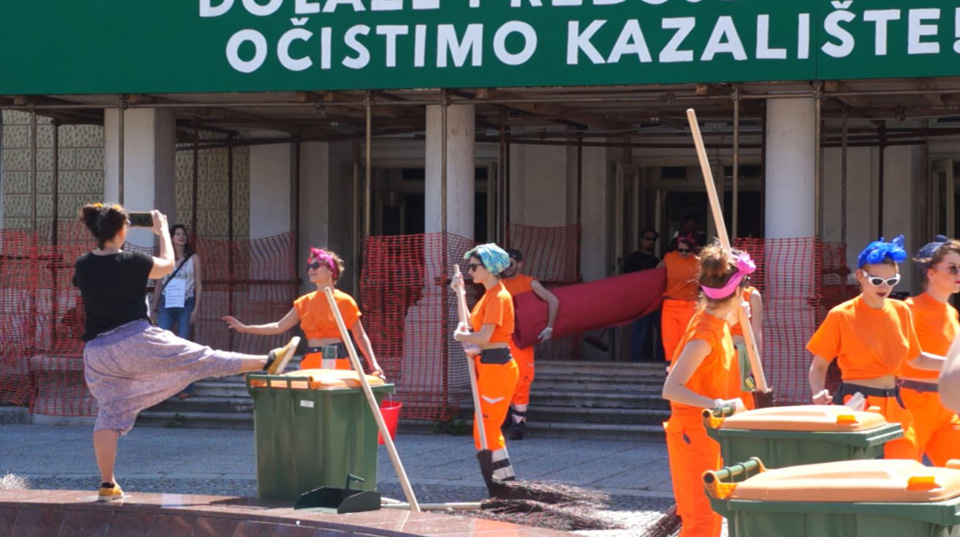 Uoči premijere predstave “Predsjednice”, autora Wernera Schwaba, park ispred Hrvatskog narodnog kazališta Ivana pl. Zajca očistili su studenti i studentice Glume i medija Akademije primijenjenih umjetnosti u sklopu performansa „Stižu predsjednice, očistimo kazalište!“ U čišćenju je sudjelovala i publika te zaposlenici HNK Ivana pl. Zajca pa su posjetitelji imali priliku zajedno s intendantom Marinom Blaževićem i ravnateljima i ravnateljicama umjetničkih grana pomesti šljunak ili pobrisati fontanu.
