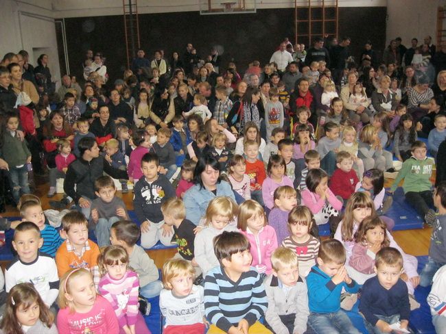 Mnoštvo vesele djece u pratnji mama, tata, noni i nonića s nestrpljenjem je očekivalo dolazak dragog gosta. Mudra sova, pauk Vilma i plašljivi vuk ispričali su