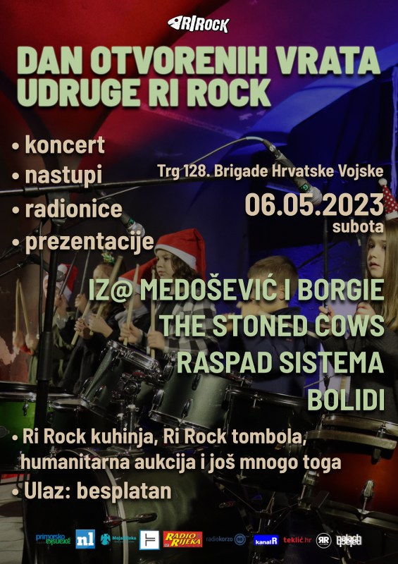 Svi ovi događaji bit će popraćeni glazbenom podlogom Radio Rože, Ri Rock tombolom s vrijednim nagradama, Ri Rock maneštrom glavnog kuhara udruge Nikole, te humanitarnom aukcijom keramičkih predmeta koje su izradili partneri iz Matice umirovljenika iz projekta Rigenerakcija.