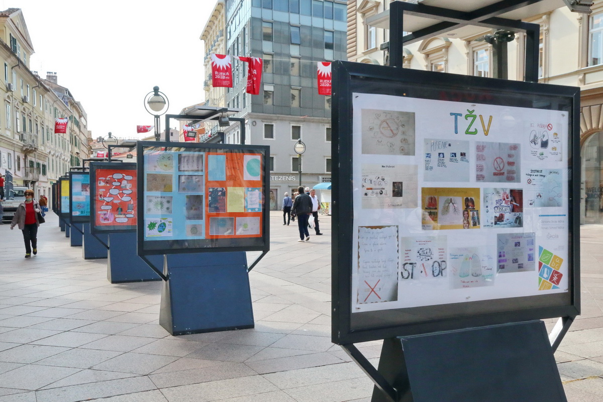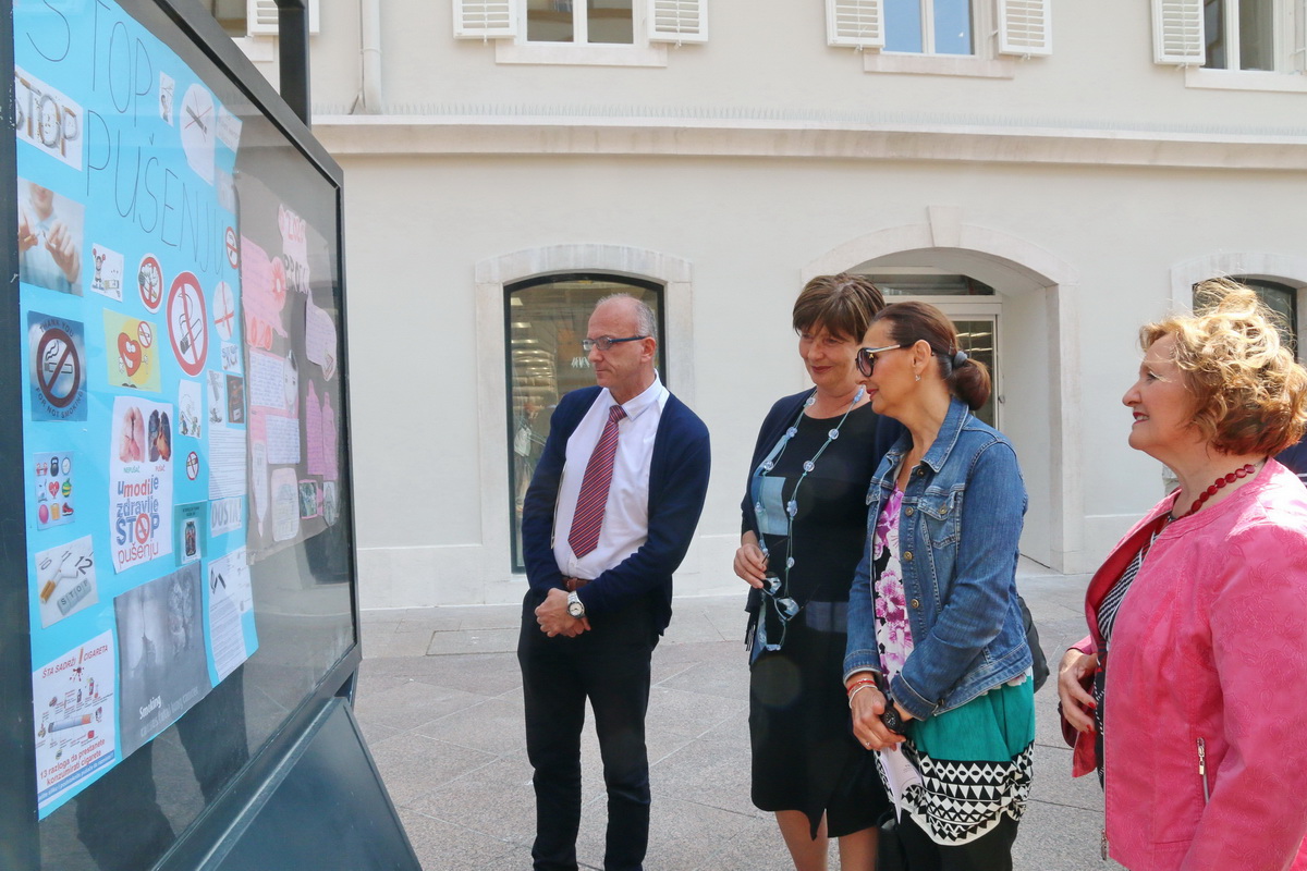 Povodom obilježavanja Svjetskog dana nepušenja na postamentima na Korzu postavljena je izložba učeničkih radova.