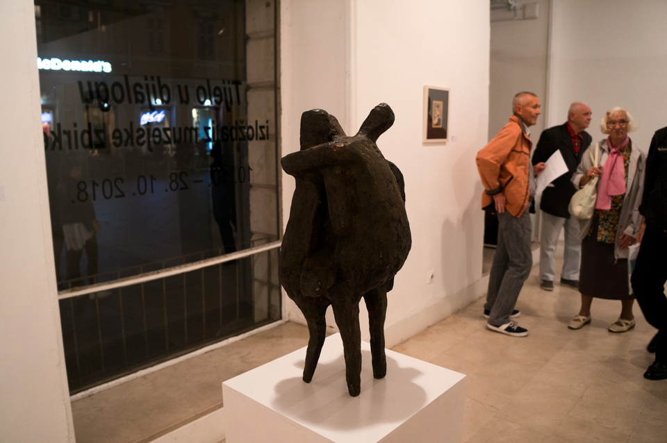 U sklopu izložbe u Malom salonu predstavljeno je dvadesetak radova nastalih u širokom vremenskom rasponu koji se međusobno razlikuju po stilu i tehnici. Međutim, radove objedinjuje središnja tema tijela i suodnosa tijela s drugim tijelima. Intimni i emocionalni trenutci tijela u dijalogu prikazani su u radovima renomiranih umjetnika (hrvatskih i stranih), kao što su Miroslav Kraljević i Miljenko Stančić.