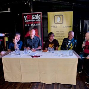Kako se Rijeka u Hrvatskoj općenito smatra rockerskim gradom, prirodno je bilo sajam knjiga i festival autora završiti glazbom, ili bar književnom raspravom o istoj. Tako je organizirana tribina na kojoj su sudjelovala četvorica književnika, koji se ujedno bave i glazbom. Enver Krivac, Zoran Žmirić, Igor Beleš i Vlado Simcich Vava govorili su o raznim iskustvima i aspektima bavljenja glazbom, te relacijama između glazbe i književnosti.
