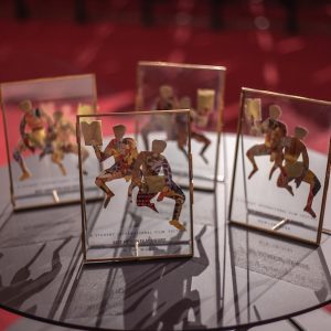Dizajn nagrade 8. STIFF-a potpisuje Natalija Stefanović dok cjelokupnog vizualnog identiteta studentica Gea Rajić.