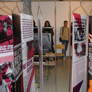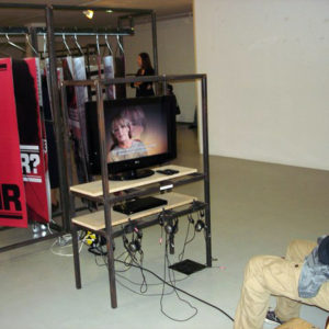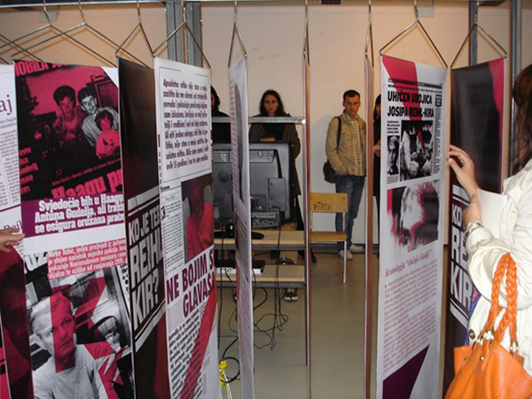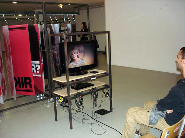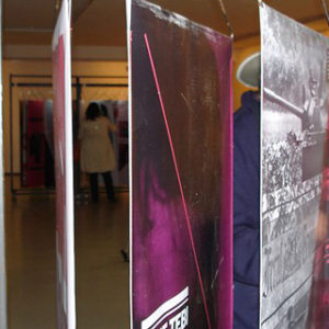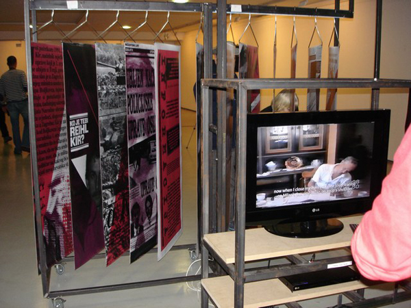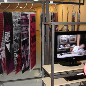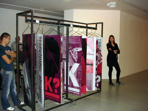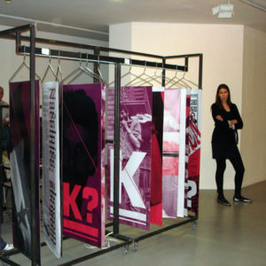se sastoji od konceptualnog ‘ormara’ iz kojega vise plakati s isječcima