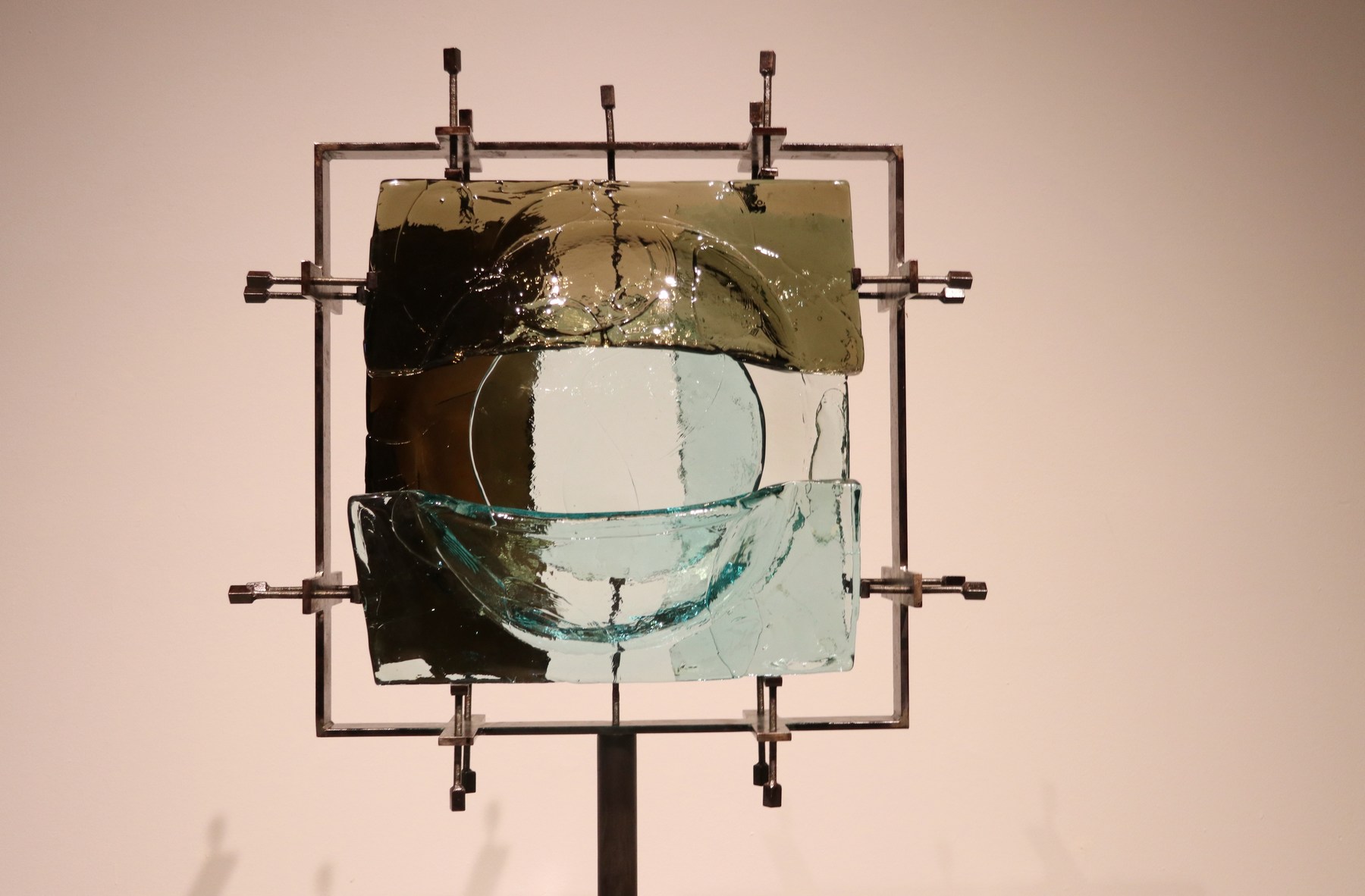 Posebnost ovog rada leži u činjenici da je jedna od pet staklenih ploča Goldonijeve skulpture Jezgra (Okovano staklo) bila teško oštećena i zagubljena. Novi život joj je, u ime dugog prijateljstva i umjetnosti, podario Livio Seguso, renomirani umjetnik u staklu i nekadašnji suradnik i prijatelj Raoula Goldonija. Na ovaj način je, tijekom istraživanja i restauracije Goldonijeve skulpture, potaknuta međumuzejska, interdisciplinarna i međunarodna suradnja. Naime, Livio Seguso je umjetnik koji izuzetno dobro poznaje Goldonijev rad s obzirom da je u Segusovoj muranskoj radionici izveden niz Goldonijevih djela, a u kratkom video intervjuu, realiziranom u suradnji  s Akademijom likovnih umjetnosti u Veneciji, koji se također može pogledati u MMSU-u, Seguso obnavlja sjećanja na Goldonija. Radi se o periodu ranih 60-ih i 70-ih godina, kad su započeli suradnju, o čemu Seguso izjavljuje: “Među nama se stvorilo veliko i recipročno poštivanje, iz kojeg je nastala želja za suradnjom, za koju vjerujem da nas je obostrano nadopunila i obogatila“.