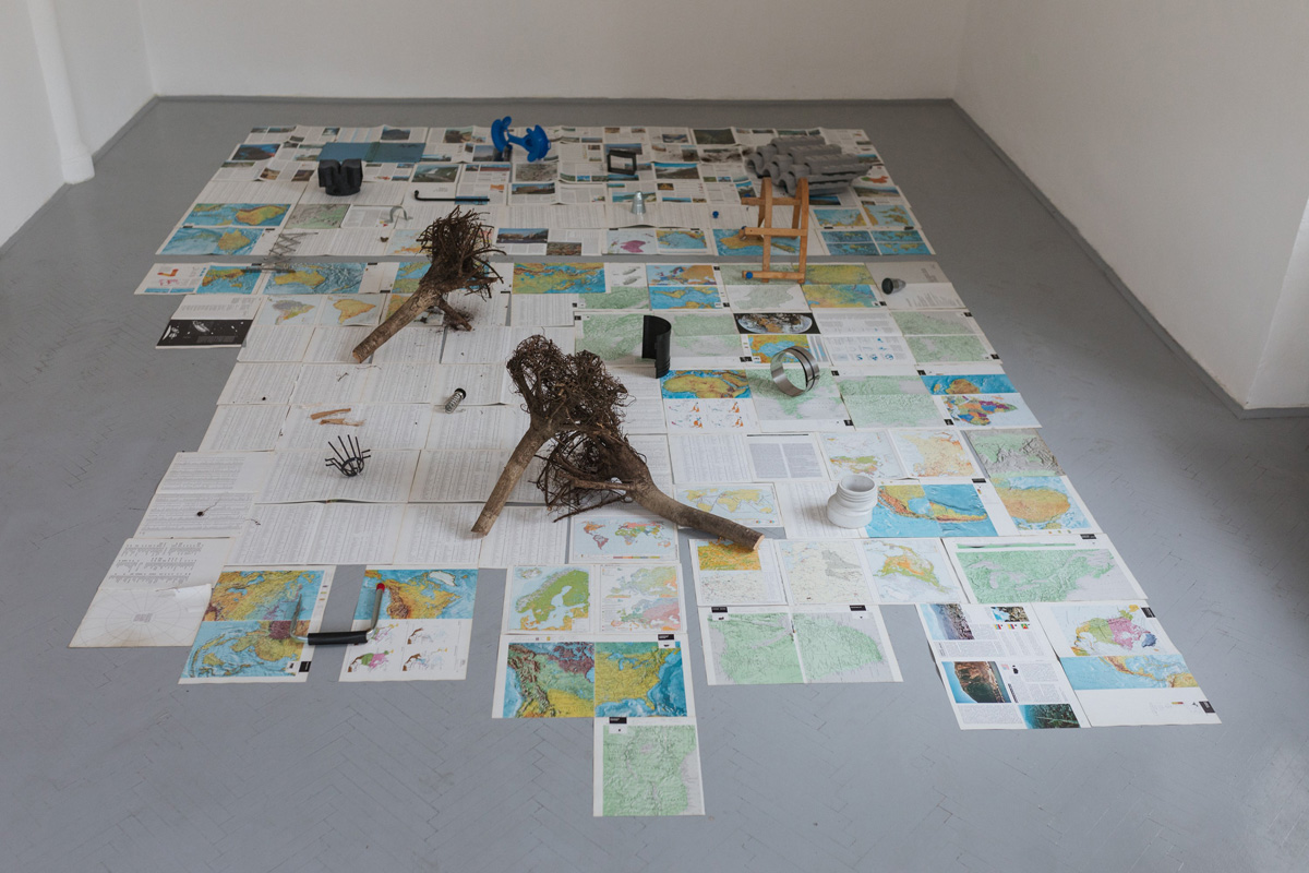 U arhivu i iz arhiva nastaje Površinski kop, Ilićeva izložbena instalacija na podu, sastavljena od stranica geografskog atlasa i rekvizita korištenih u predstavama Crtač (2014.) i Iskop (2018.). Siniša Ilić u radu koristi predmete stavljene „izvan upotrebe“ poput karata koje više ne reflektiraju stvarnu političku, klimatsku ili demografsku sliku svijeta. Propitujući kroz postav i samo značenje arhiva, kreira „meditativni prostor ograničene funkcije i aktivnog poziva na kretanje.“