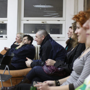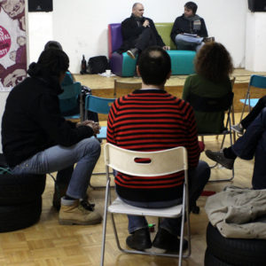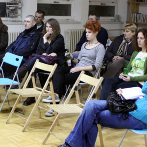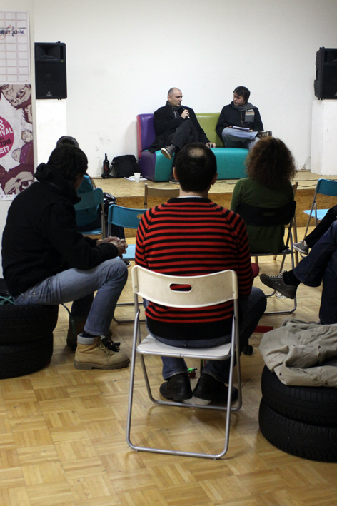 Žmirić je govorio o raznim sferama svog stvaralaštva, s posebnim osvrtom na ono književno. Spomenule su se tako tri njegove do sada objavljene knjige: “Kazalište sjena”, “Vrijeme koje nam je pojeo Pac-man” i “Blockbuster”, a zanimanje publike privukla je i knjiga o riječkim rock himnama čije objavljivanje tek očekujemo.