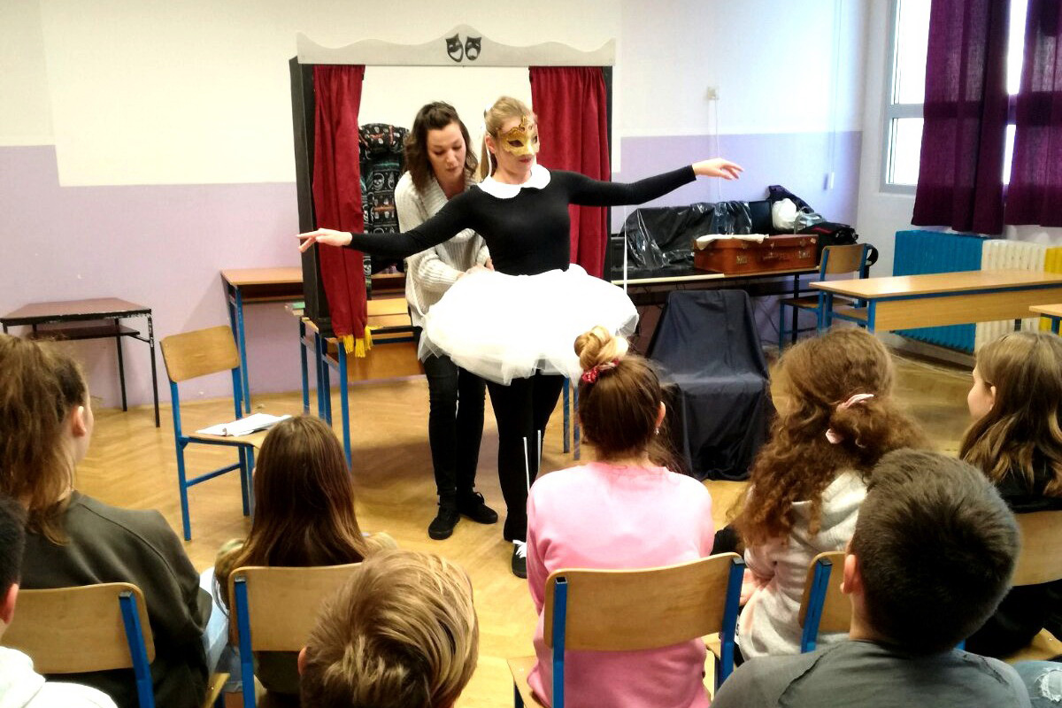 Drugi dio, radionički, u kojem djeca sudjeluju zajedno s glumicama, kroz igru riječima, asocijacija, pantomime, učenici ponavljaju izdvojene pojmove koje su vidjeli i čuli u izvedbenom dijelu pa kroz vlastitu igru uče o kazalištu.