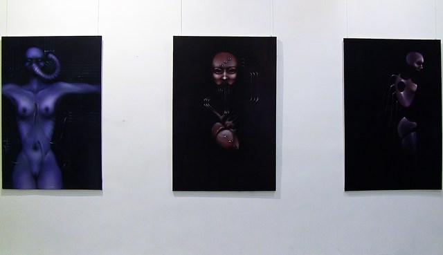 Nalazeći inspiraciju u knjizi Williama Gibsona “Neuromancer”, radovima suvremenih umjetnika kao što su Mike Turner, Sarawut Chutiwongpeti, Scott Hutchison, Christopher Conte, Adam Bradley, dark electro i industrial glazbi te znanstvenofantastičnim filmovima, Bojana Vojvodić svojim nas slikama uvodi u svijet potencijalne vrlo bliske budućnosti, u kojoj čovjek i stroj egzistiraju kao simbioti. “Plug – in/Add-on” simbolizira elektroničku nadogradnju, ne samo tijela već i svijesti – što posebno dolazi do izražaja u fizički neopipljivom cyber – svijetu.