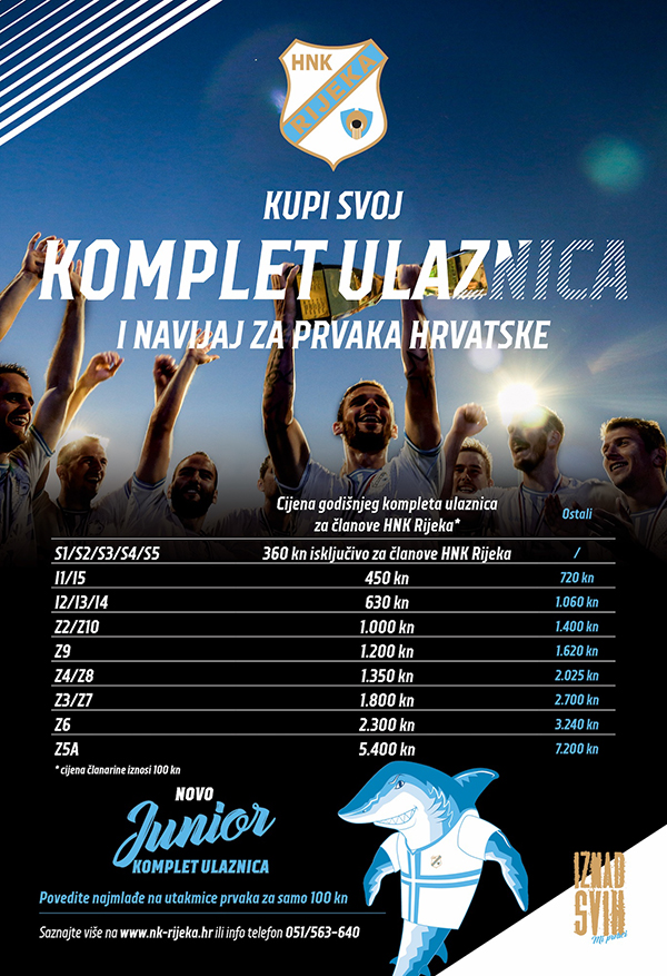 360 kuna osigurati svoje mjesto na sjevernoj tribini i pratiti Rijeku u