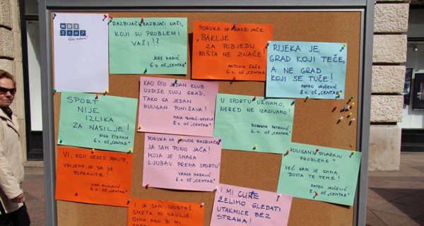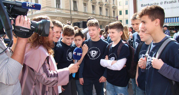 na Korzu, ispred zgrade Grada Rijeke. Riječ je o preventivnoj akciji “Ja sam za fair play!” gdje su se djeca